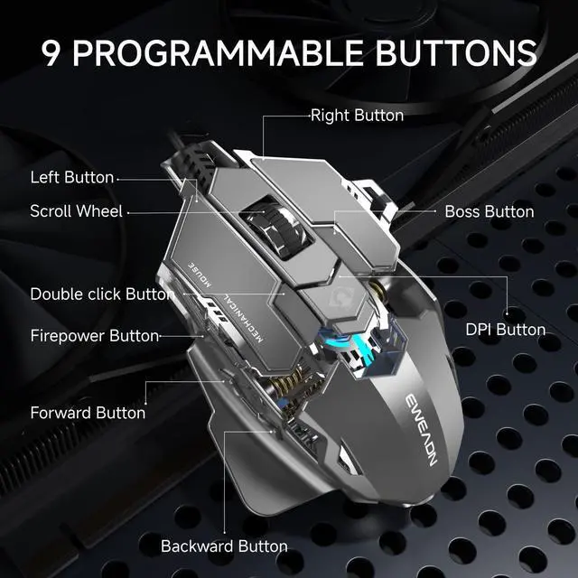 • 9 Programmable Buttons: Equipped with 9 programmable buttons, this PC gaming mouse allows you to customize commands for any game or workflow, including rapid fire, macros, and more. The included software offers customization for DPI, report rate, RGB lighting, and macro settings.