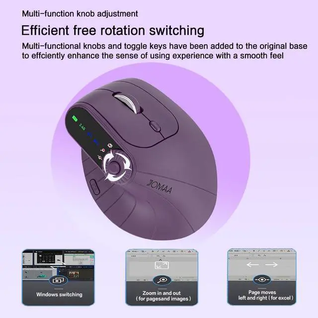 Dual Connectivity & Multi-Device Compatibility Switch seamlessly between three devices via 2.4G and Bluetooth 5.2. Compatibility Details: BT 5.2 Mouse can only be used on Windows 8, Windows 10, Mac OS X 10.10, and Android 4.3 or higher. BT 3.0 Mouse and 2.4G are compatible with Windows XP, Windows 7, Windows 10, and Mac OS 10.10 or higher.