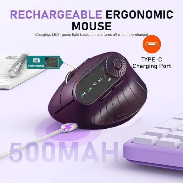 Rechargeable 500mAh Battery Long-lasting performance with Type-C charging; no need for frequent battery replacements.