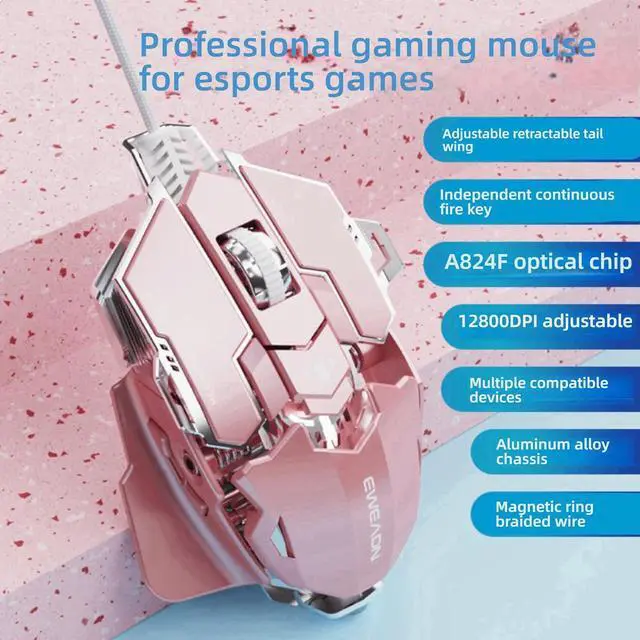 GAMING FEATURES: Independent continuous fire key for rapid action, magnetic ring braided wire for durability, and full macro definition support for competitive gaming