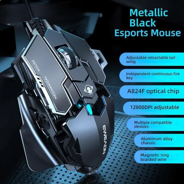 ADVANCED SENSOR: Equipped with A824F optical chip and precise 12800 DPI adjustability for superior tracking accuracy and responsiveness during gameplay