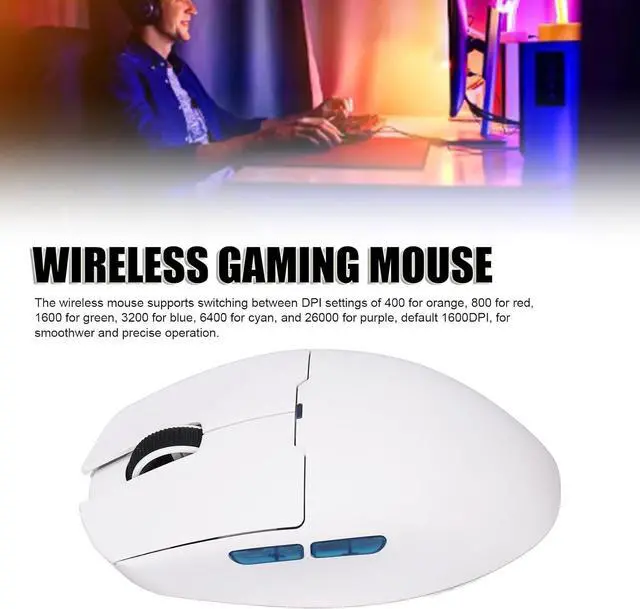 6 DPI Setting: The wireless mouse supports switching between DPI settings of 400 for orange, 800 for red, 1600 for green, 3200 for blue, 6400 for cyan, and 26000 for purple, default 1600DPI, for smoothwer and precise operation.