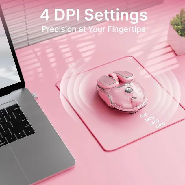 Silent Clicks & Precision Control: Enjoy quiet, noise-free clicks with the bluetooth wireless mouse, perfect for libraries, offices, or late-night work. With adjustable DPI settings (800/1600/2400/4800) and a high-precision sensor, it delivers smooth, accurate tracking for any task
