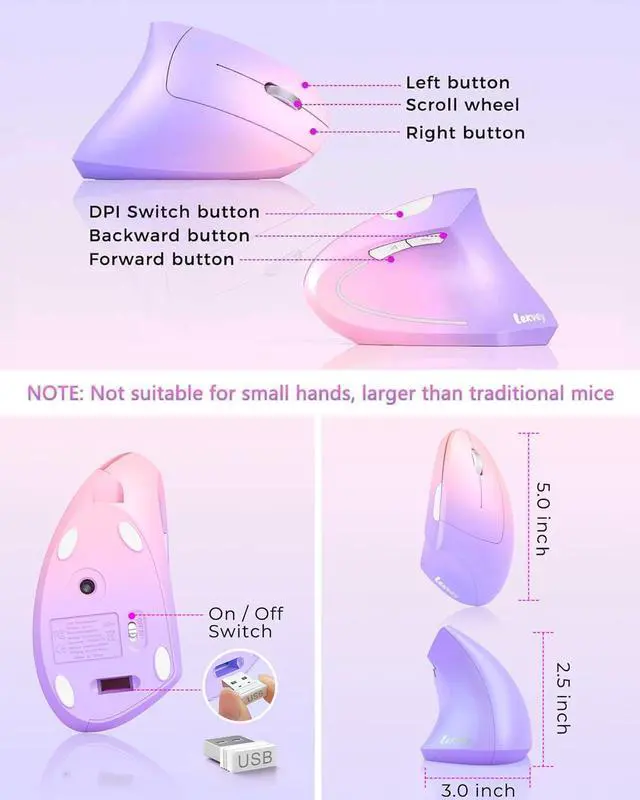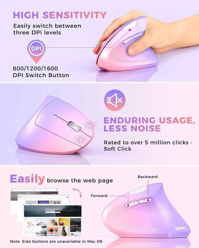 This Lekvey wireless ergonomic mouse is full of vitality, innovation, and has many health benefits. By changing the way you use your wrist and arms, you will effectively reduce pain and discomfort. Add rubber oil coating to prevent sweaty fingers from sliding. From the office to gaming, using the optical carpal tunnel mouse is comfortable and healthy.