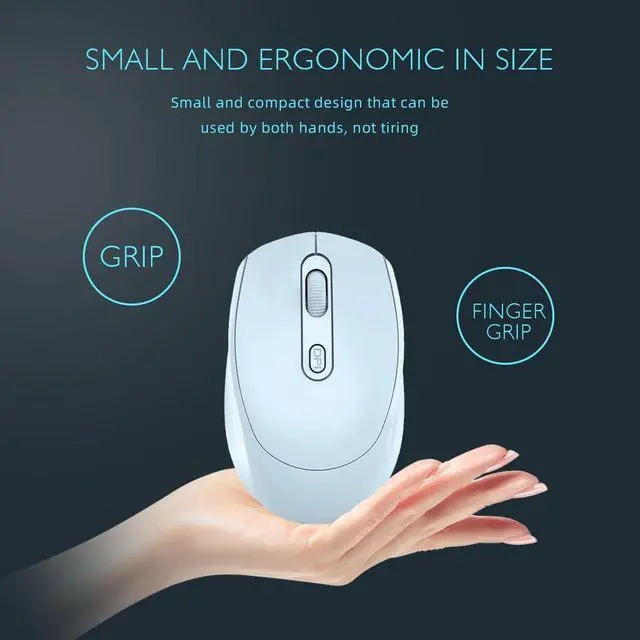 This is a perfect wireless mouse! A body with an excellent ratio of 4.0 * 2.5 * 1.6 inches, an enviable light weight of 2.25 ounces, a quiet switch that no longer disturbs others, 3 DPIs that can be switched freely, a classic and fashionable appearance, high-performance wireless transmission, and 5 fashionable colors to choose from. The comfortable touch makes you no longer tired of work. The receiver is cleverly stored in the battery box, making it easy for you to carry around. When the mouse is loaded into your backpack, you can control it through a switch at the bottom of the mouse to no longer consume the energy of your battery.