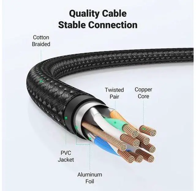 Excellent Anti-interference: UGREEN Cat 8 internet cables are designed with 4 shielded foiled twisted pairs (F/FTP) and an aluminum foil shielding layer. This design can greatly reduce interference and crosstalk from adjacent pairs and other cables, making network speed faster and more stable.