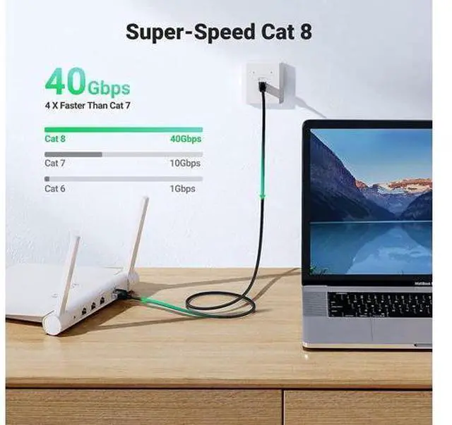 Wide Compatibility: With the RJ45 Connector, UGREEN Gigabit Cat 8 ethernet cable can be perfectly compatible with computers, laptops, modems, routers, PS5, PS4, PS3, X-Box 360, X-Box One, Switch, networking switches, ADSL, network adapters, hubs, and other networking devices. It can also be fully backward compatible with Cat7, Cat6e, Cat6, Cat5e, Cat5.