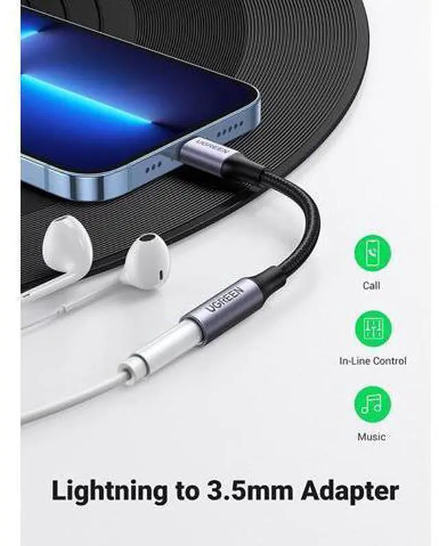 • Apple MFI Certified: UGREEN Lightning to 3.5mm headphone jack adapter can easily connect existing 3.5mm headset to iPhone 13/13 Mini/13 Pro/13 Pro Max/12/12 Pro/11/11 Pro/11 Pro Max/X/XR/XS/XS Max/8/7 for audio and mic without Lightning connector headphone. MFi Certified (PPID: 219693-1009): Apple-verified MFI chipset to ensure 100% compatibility with Lightning Apple devices. Universal Compatibility: Works with all devices that have a Lightning connector and support iOS 10.3.1 or later, including iPhone, iPad and iPod touch, such as iPhone SE 2020/11 Pro/ 11 Pro Max/ 11/ XS Max/ XS/ XR/ X/ 8/ 8 Plus/ 7/ 7 Plus, iPad Pro/ iPad Air /Air 2/ Air 3/ mini 5/ mini /mini 2 /mini 3 /mini 4 /iPad 4th gen/ iPod Touch 7/ iPod touch 6 Multi-Functions: This Lightning to 3.5mm adapter is compatible with all Apple headphone, support audio&mic function, in line control including volume control, calling. It allows you to control your music and take calls on the go. Kindly note: it can support audio&mic