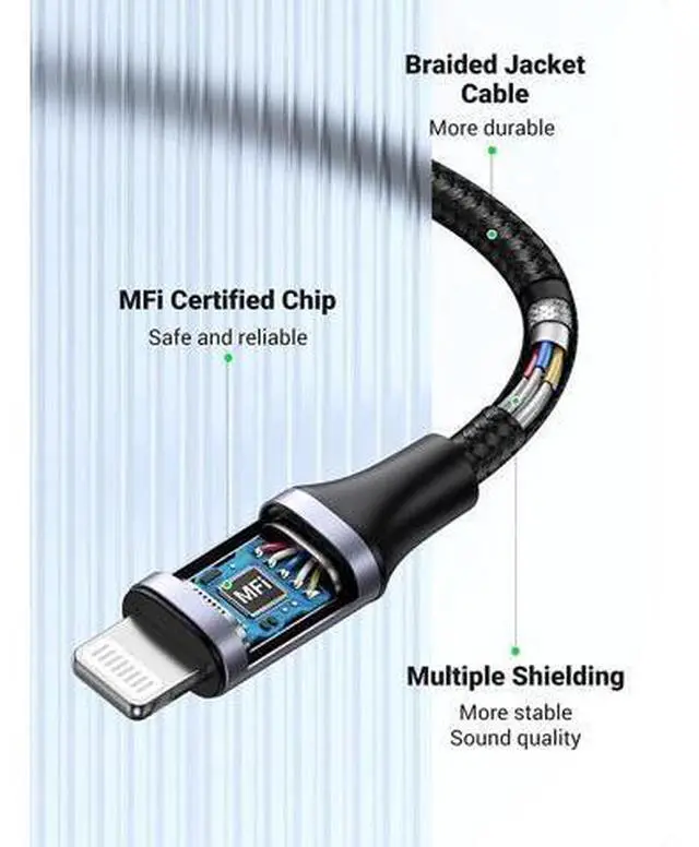 Sound Quality: The Nylon braided outer of the Lightning to 3.5 mm cable is quite robust and flexible, making cables tangle-free and everlasting. This cable is made of Oxygen-free copper, ensuring high fidelity sound quality and providing maximum conductivity and durability Slim and portable design, easy to carry around. Premium aluminum alloy shell prevents scratches and rust, more durable.