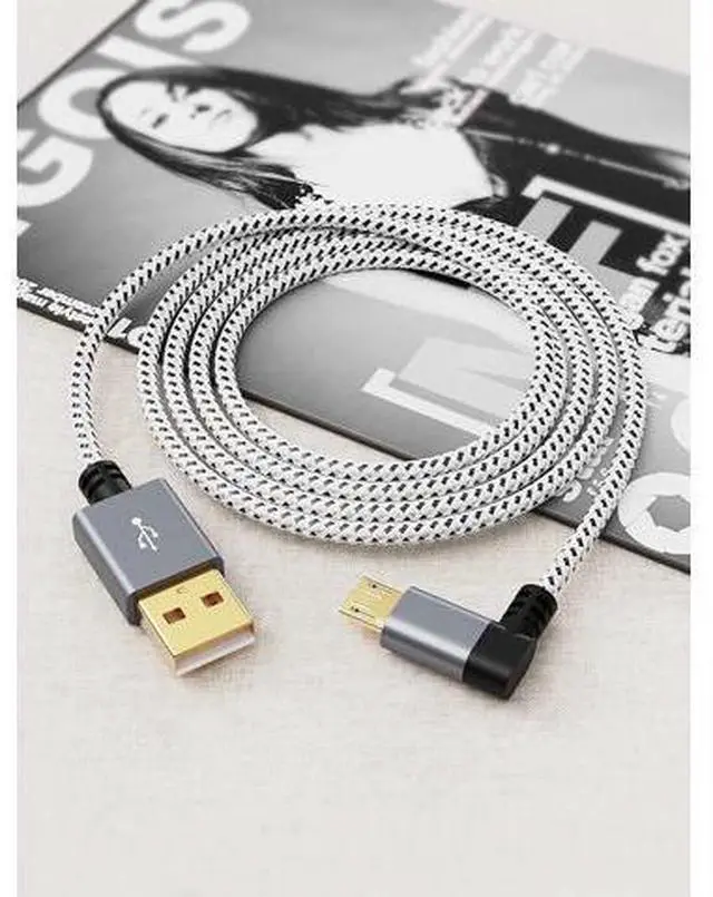 Two-tone premium micro usb cable with high-grade aluminium alloy case, triple shielded(AL-Foil/Mylar shielding+twisted pair shielding+ 100% Tin-copper braiding shielding), with BLACK+WHITE color cotton jacket. ***Please note that this is a cable with braided jacket, so it's a little stiffer but more durable than PVC cables. *** HIGH SPEED TESTED, Support Sync data at 480 Mpbs. Charge Android and Windows smart phones, tablets & MP3 players, digital cameras / camcorders & more. 90-degree design can make for better cable management in some situations, especially in tight spaces.