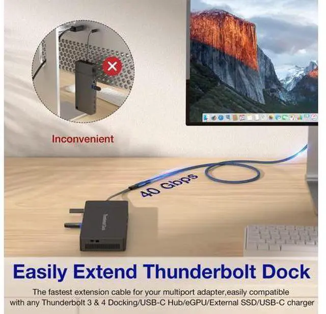 NOTE: NOT compatible with Thunderbolt 2 devices. Ultra 40Gbps Full Speed The USBC to USBC extension cable supports advanced USB4, thunderbolt 3/4 performance, ultra data transfer speed up to 40Gbps allows you copy 14 hours of HD video or 25, 000 HD photos within one minute at the incredible speed.