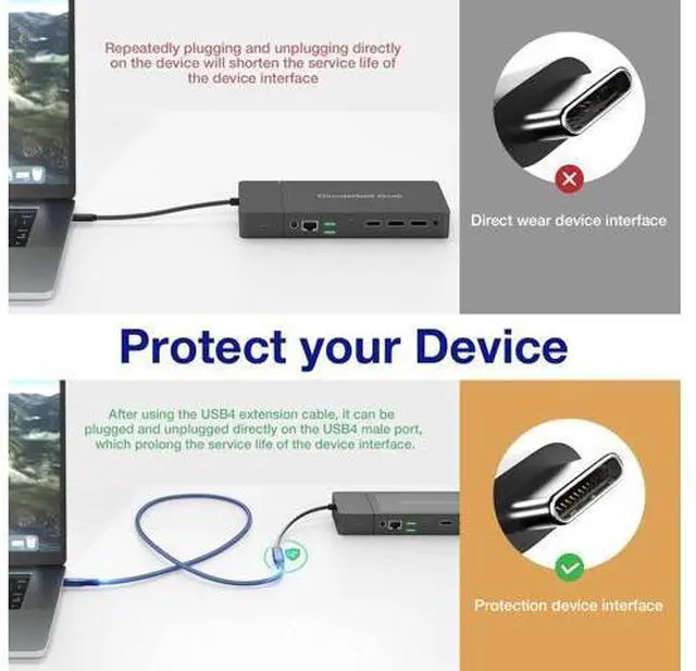 For New Thunderbolt Devices ULT-WIIQ USB C extension cable is completely compliance with the USB4 specifications. Meanwhile, it is designed to extend and protect the USB Type C female port on all USB-C devices, including some high-end Thunderbolt 3 & 4 docking station, Thunderbolt 3 & 4 cable, Thunderbolt 3 Monitor, Thunderbolt Laptop, Dell XPS, MacBook Pro, iPad Pro 2021, and more.