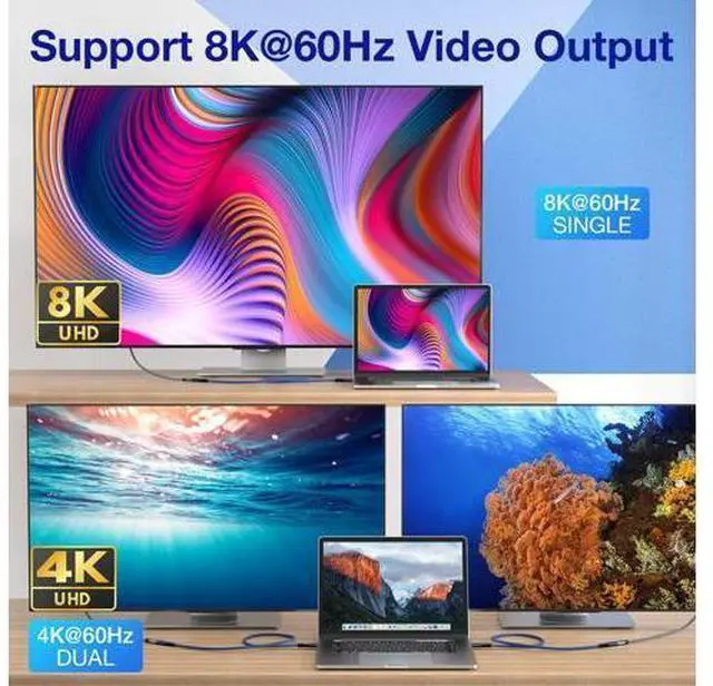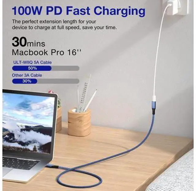 NOTE: Data transfer speed still depends on your devices, max 20Gbps for USB4 Gen2 and max 40Gbps for USB4 Gen3. 100W Charging & 8K Display This USB C extension cable can charge USB C devices with the latest Power Delivery charging technology including Qualcomm QC 3.0 / 4.0 +, Samsung AFC, USB PD 2.0 / 3.0. Supports max 100W power 20V5A and also has enough bandwidth to drive one 8K@60Hz, 6K@60Hz display, or two 4K@60Hz displays simultaneously. Enjoy Apple Pro Display XDR for a crystal-clear 6K@60Hz video experience. Wide Compatibility All the latest USB C devices including for Thunderbolt 4 & Thunderbolt 3 devices. Also backward compatible with USB 3.1 & 3.2 accessories, such as PD charger, storage devices, smartphone, game console, wearable devices, External SSD, eGpu, USB-C docking station. MacBook Air, MacBook Pro, iPad Pro, iMac, Mac mini, Apple Pro Display XDR, Alienware Laptop, Dell XPS, Thinkpad X1/X13, Intel NUC, Samsung Galaxy S21 Ultra 5G, S20+, S10, Galaxy Note20 5G and more. Easy to Use Our USB4 female to male cable will solve the problem of charging or using inconvenient due to short cables, and desktop in a mess caused by short usb c hubs.