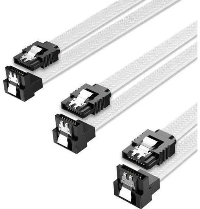 QIVYNSRY SATA III Cable Right Angle 90 Degree for HDD/SSD/CD Driver/CD Writer ( White - 3