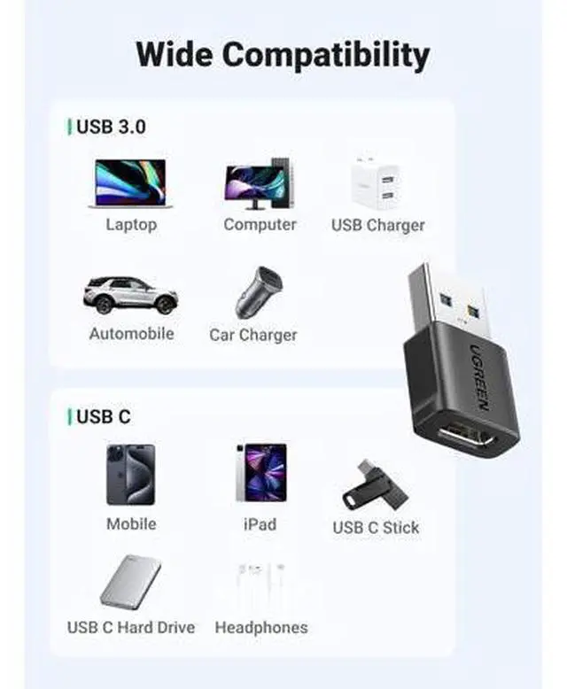 • UGREEN USB to USB C Adapter 3Pack USB C Female to USB Male Adapter 10Gbps Type C Converter for iPhone 17 16 15 14 13 Plus Pro Max iPad Air Mini 6 7 Galaxy S23 S24 iPad Air Black