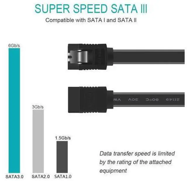 Gbps Fast Data Transfer: The latest SATA Revision 3.0 allows for data transfer speeds of up to 6 Gbps, 2x faster than SATA II, backwards compatible with SATA I and SATA II. Data transfer speed is limited by rating of the attached equipment.