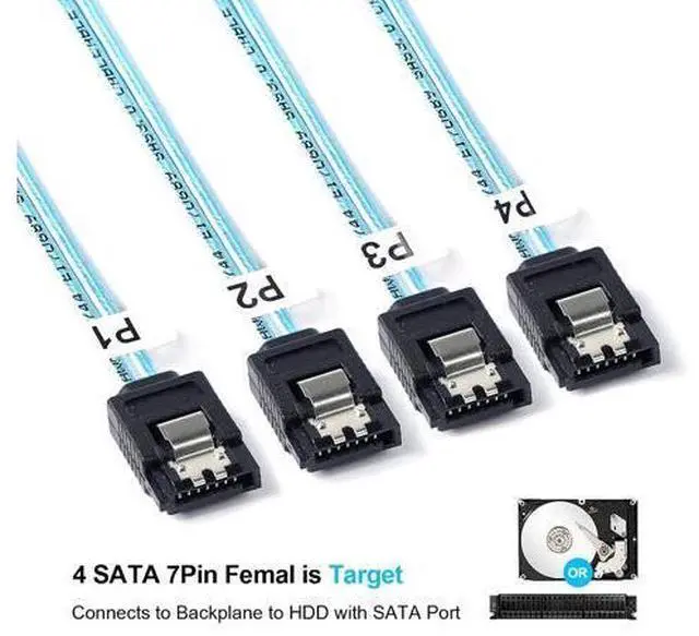 What you get: mini sas to sata cable ( 3.3FT /1M, 2xPCS) mini sas 36Pin (SFF-8087) male to 4 sata 7pin female cable