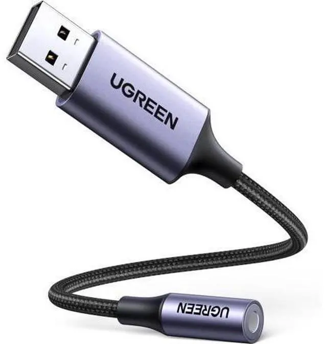 USB Audio Adapter: UGREEN USB to 3.5 mm jack audio adapter supports both listening and talking. In-line control and microphone function allows you to chat while gaming. This USB Aux adapter enables you to connect headphones, headset, speakers with 3.5 mm jack to your PC through the USB A port.