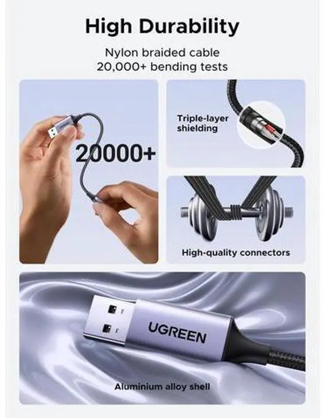 Last: With aluminium alloy shell, the Aux to USB adapter is more durable and portable than other plastic USB audio adapter. Nylon braided design of USB to audio jack adapter ensures stable audio transmission. 10000+ bend tests prove that USB headset adapter can prevent damage caused by tangling and scratching