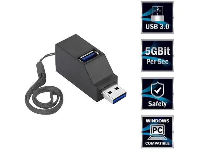 USB Expansion: Transform one of your computer' s USB ports into three(Two USB 2.0 Ports and One USB 3.0 Port). Stylish and simple, compact design without a trace of burdensuitable for carrying out and office in traveling. Comes with a lanyard, which is convenient for hanging and storage, and one cap protects the USB male head from knocks and impacts. Works with USB 3.0, 2.0, or 1.1 host controllers and devices on all Windows, Mac, and Linux/Unix computers at USB 2.0 speeds. Transfer rates are device and USB host controller dependent.