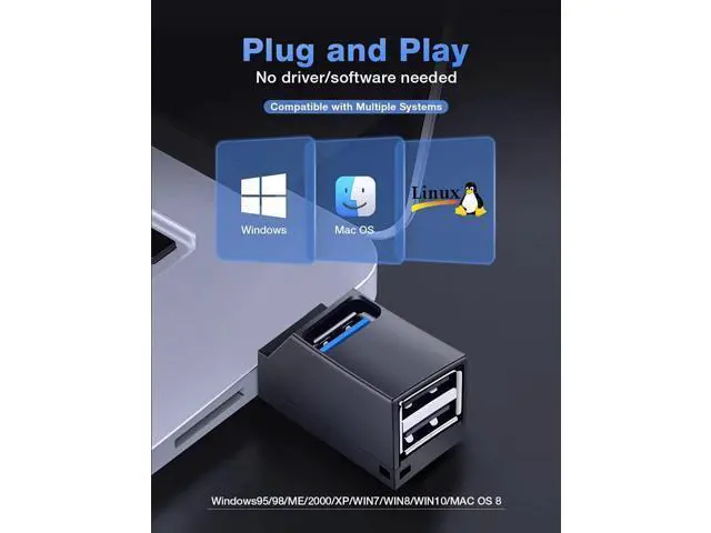 [3-Port USB hub] With 1 USB 3.0 + 2 USB 2.0, Support 3 ports to work at the same time, without any pressure, and the temperature keeps within moderate range [Plug and Play] No driver/software needed, applies