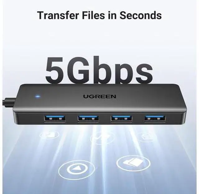 Seconds: The USB 3.0 Hub supports a max file transfer speed of 5Gbps. That' s fast enough to transfer a 10 GB file in just 16.4 seconds Plug and