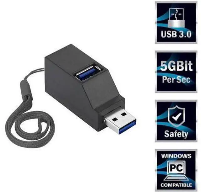 USB Expansion: Transform one of your computer' s USB ports into three(Two USB 2.0 Ports and One USB 3.0 Port). Stylish and simple, compact design without a trace of burdensuitable for carrying out and office in traveling. Comes with a lanyard, which is convenient for hanging and storage, and one cap protects the USB male head from knocks and impacts. Works with USB 3.0, 2.0, or 1.1 host controllers and devices on all Windows, Mac, and Linux/Unix computers at USB 2.0 speeds. Transfer rates are device and USB host controller dependent.