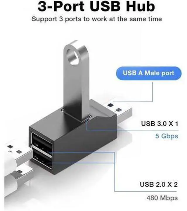to various devices: laptop, pc, Mac, XBOX, PS4, flash drive, keyboard, mouse, card reader, Mobile HD, printer, camera, USB fan and USB cables [USB 3.0 Super Speed] This USB splitter provides 5 Gbps stable data transfer and is compatible with 2.0 / 1.0. The peak transmission rate of USB 2.0 is 480Mbps. The maximum transmission rate of USB 1.1 is 12Mbps. 3.0 is 10 times that of 2.0 [Small and Portable] The user-friendly design takes into account the size of most flash drives on the market and the space between each USB port. Plug 3 flash drives at the same time without worrying about space. With 1 hanging loop that can be taken anywhere. [Stable and Secure] Use premium ABS Material, Ultra light, good heat dissipation, more stable transmission. 12-Month Warranty and Friendly Customer Service.