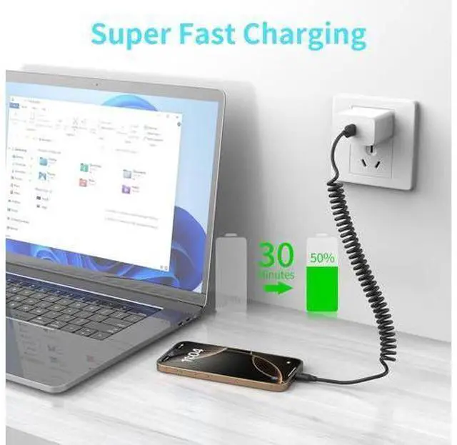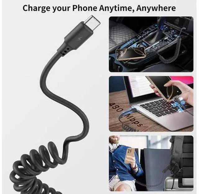 Data Transfer: This coiled usb c cable providing fast charging (3A) and data transfer (480Mbps). Coiled usb cable can be easily used at home office outdoors and support to connect android auto takes you less time to fully chargeWide