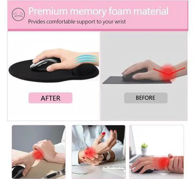 Mouse Pad: The ergonomic wrist rest filled with soft and delicate memory foam that provides a comfortable touch and effective support to your wrist. Memory foam is not easy to deformation will always bounce back to it's originNon-Slip