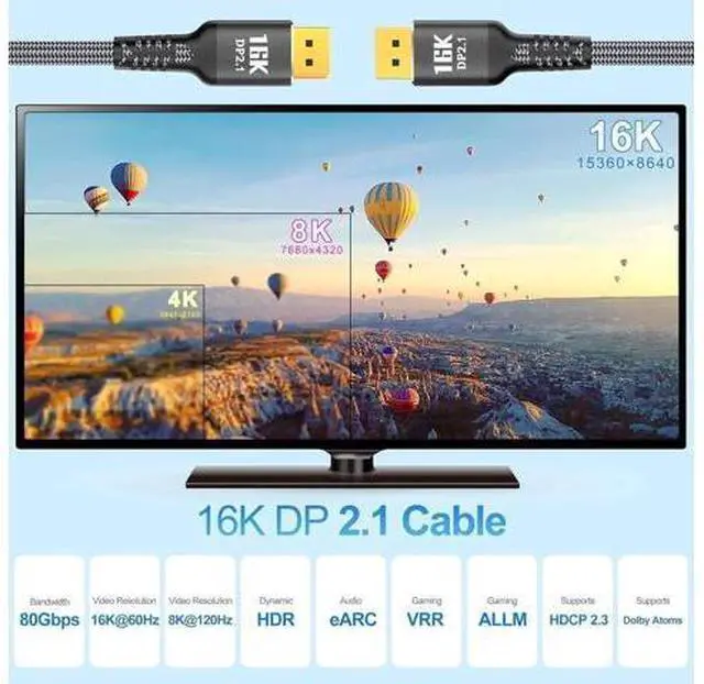 DisplayPort Cable DP2.1 80Gbps Support 4K@240Hz/165Hz/144Hz, 8K@120Hz/10K@60Hz/16K@60Hz Compatible with DisplayPort 2.0/1.4, HDCP/ DSC1.2a/ HDR10 4090,7900Graphics/PC/TV/Monitor,