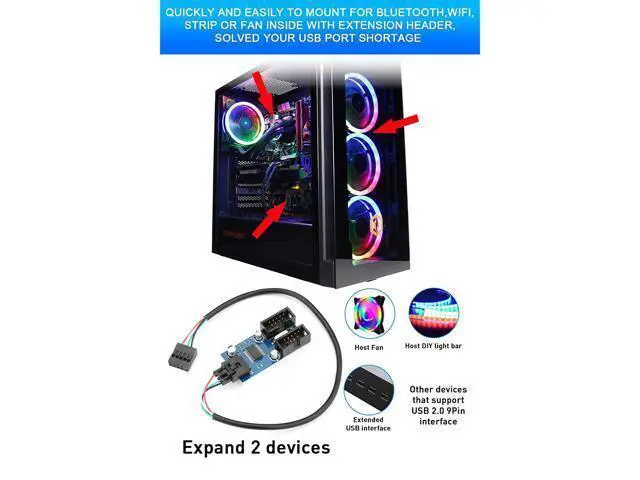 • Wide Application: Internal 9Pin Usb Splitter Convert 1 Motherboard Usb 2.0 Male To 2 Females. This Adapter As An Usb 2.0 Motherboard Splitter Can Connect More Devices.It Is Purely For Data But Not Power, So A Good Ideal Connect Corsair Commander Pro, Tp Link Pcie, Sata/Pcie Ssd Card, Wifi Card, Cpu, Cooling Fans And Rgb Light Inside The Motherboard, Solve Your Interface Usb Port Shortage Of Motherboard.