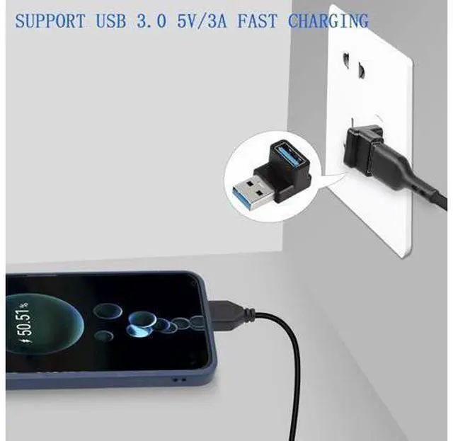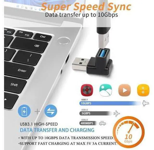 90 Degree AngleUSB 3.1 right angle male to female adapter used to extend the USB cable in narrow space so that the cable can be attached to the device without damaging the cable or device port extending the service life. 10Gbps90 degree USB 3.1 right Angle adapter data transfer speed up to 10Gbps allowing you to transfer large capacity files in seconds backward compatible with USB 3.0 / 2.0 / 1.0 series and support charging up to 5V/3A. OTGUSB A male to female adapter support tablet computer to connect auxiliary devices such as gamepad mouse keyboard etc.