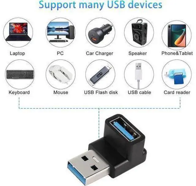 for data exchange and transmission convenient tablet operation. CompatibilityUSB 3.1 male to female right angle converter compatible with USB A port for data transmission and charging devices widely used in PC laptop USB charger charge bank USB flash drive etc. (only USB function can not output HDMI VGA and other audio and video signals) Plug and Play 90 degree USB A 3.1 adapter no installation setup plug and play. Small and easy to carry can be left in the USB port without interference.
