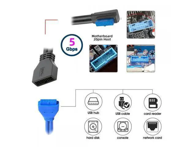 • Right Angled USB 3.0 20Pin 19Pin Male Low Profile to Female Extension 5Gbps Cable 90 Degree for Motherboard