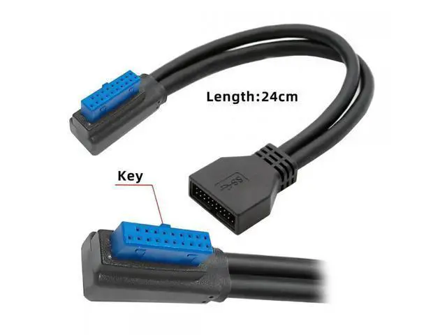 Right Angled USB 3.0 20Pin 19Pin Male Low Profile to Female Extension 5Gbps Cable 90 Degree for Motherboard Please note that the position of the key will determine the direction of the cable. Compliant with USB Base Specification 3.0, Super-speed 10times faster than USB 2.0 Version, Offers a throughput of up to 5Gbps when used with a USB 3.0 host and device.