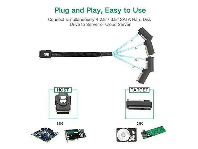 UGREEN Serial Attached SCSI SAS Cable - SFF-8087 to 4 SFF-8482 SAS Drive Cable, Internal HD Mini SAS SFF-8087 Host to 4 SATA 15+7 Target Hard Disk 6Gbps Data Server Raid Cable
