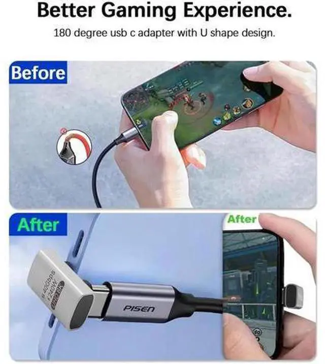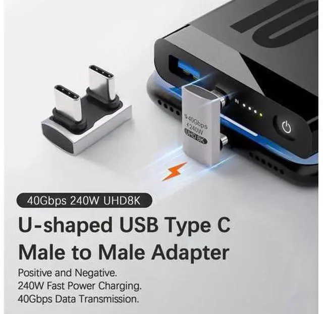 Video: The 180 degree usb c adapter supports high-speed data transfer of up to 40Gbps, complying with the specifications and data transfer rates of USB4 cables. It also supports 8K@60Hz high-definition video and audio output. It is a fully functional usb c to usb c adapter Durable Aluminum Alloy ShellThis u shape usb c adapter has a compact design, making it portable and perfect for your office, travel, and daily home needs. It has been tested to withstand over 1000+ insertions without any impact.
