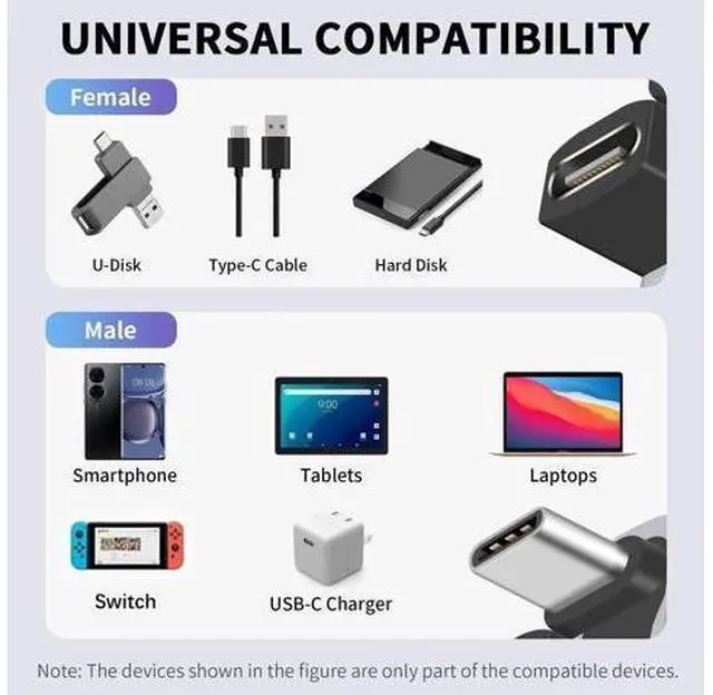 Products Features: 1. USB C 180 Degree Design 2. 240W Fast Charging 3. 40Gbps Super Speed Transmission 4. 8K@60Hz HD video & audio output. 5. Small and portable Wide product compatibility Designed for most Type C devices, compatible for ipad, macbook, compatible for Thunderbolt 4/3, MacBook Pro, Chromebook, Surface Book, USB C hub, Google Pixel, Samsung Galaxy S22/S21/S20/S10, Note 20/10, LG G5/G6, and so on. Additional Features 40Gbps and 8K