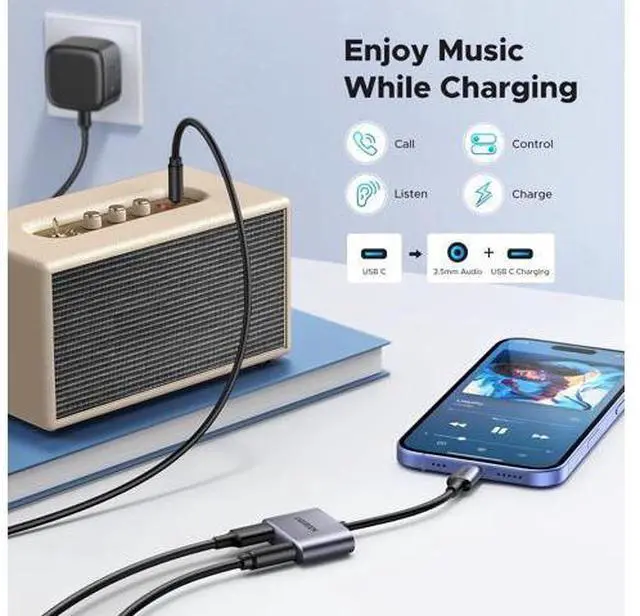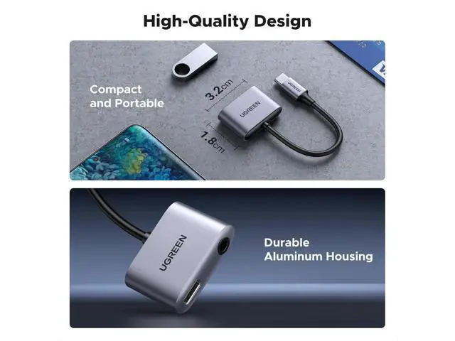 Beat: Don't let a dead battery ruin your musical moment. With UGREEN's USB C to 3.5 mm headphone jack adapter you can charge your device while enjoying your tunes or taking a call without missing a beat. Plug-and-play rapidly accomplish audio and charging operations without installing drivers or software.