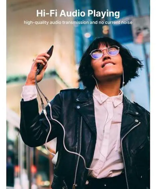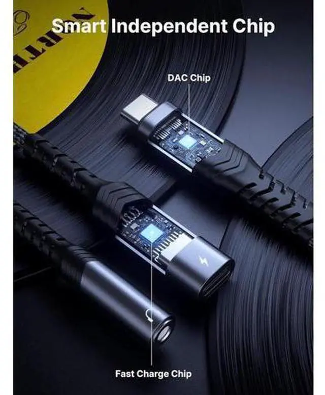 [Note: It may not support QC for some new phones. Suggest using PD wall charger to get faster charging speed]Hi-Fi Audio PlayingThe USB C to 3.5 aux adapter features a Smart DAC chip. All ensures stable high-quality audio transmission and no current noise won' t hurt your ears. The 3.5 mm female port compatible with CTIA.