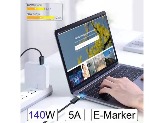 Type-C USB-C Male to Male USB 2.0 Version Data Cable Support E-Marker 140W for Laptop & Phone. Reversible Design and 140W/100W Type C connector, Reversible plug orientation & Cable direction. Build-in Emarker chipset, Support Scalable 140W/100W power charging and usb 2.0 480Mbps data. Alloy-Shell overmold and sleeve cable. Work for Laptop & Tablet &Mobile Phone & Hard Disk Drive.