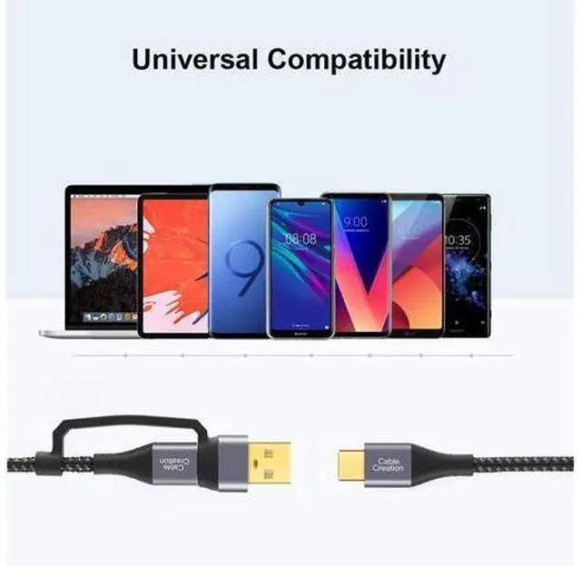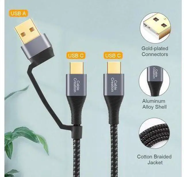 • ?2-IN-1 USB C Cable Multi-interface Connector - CableCreation 2 in 1 USB-C cable, directly connect/charge the device to the latest USB-C laptop/charger. Easy to carry and more convenient to use. Compatible with all charger adapters that no matter it has a USB-C charging port or a USB-A charging port.