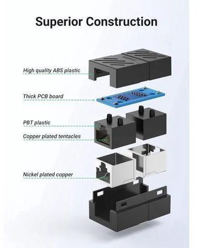 • Effectively Extend: UGREEN rj45 coupler ethernet extender connector is ideal for extending ethernet connection by connecting 2 short network cables together. Never worry about the network cable is not long enough anymore.