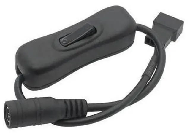 [Product interface]: a small 4pin connector at one end, and a DC5521 interface at the other end [Product function]: Power the 4Pin fan with a power adapter