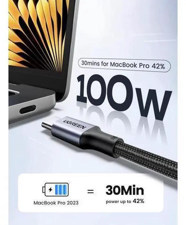 Fast Charging: The UGREEN USB C cable supports 100W fast charging with PD 3.0 and QC 3.0 technology to quickly charge iPhone 15 to 60% in just 30 minutes. Backwards compatible with 65W/45W/30W/20W chargers
