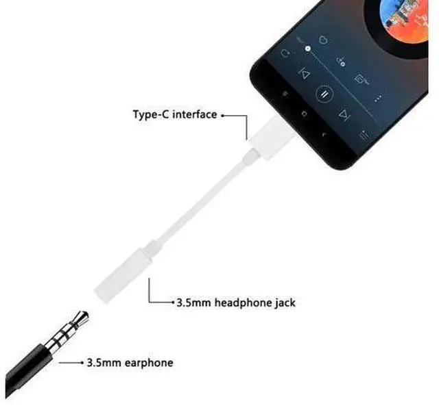 : USB Type C male to 3.5 mm earphone female This adapter cable lets you connect the device that use 3.5 mm audio plug to your USB Type C devices The branch cable of USB Type C female work with charging function Small and light and easy to carry. Plug and play, suits for type c smartphones without 3.5 mm headphone jack. Can let you connect mole phone, car stereo, speaker etc. to enjoy music etc.