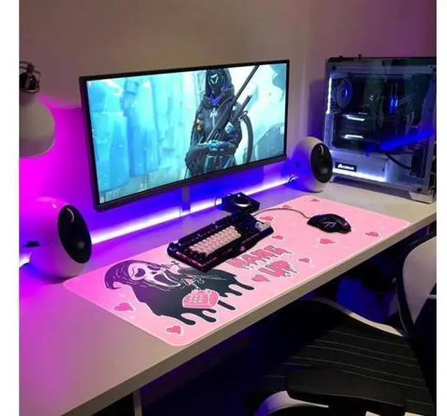 • Large Gaming Mouse Pad 31.5 x 11.8in Desk Mat for Office Mousepad Anti-Skid Rubber Base Soft Comfortable and Durable Desk Pad (Pink)