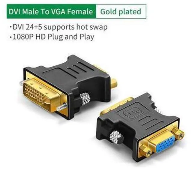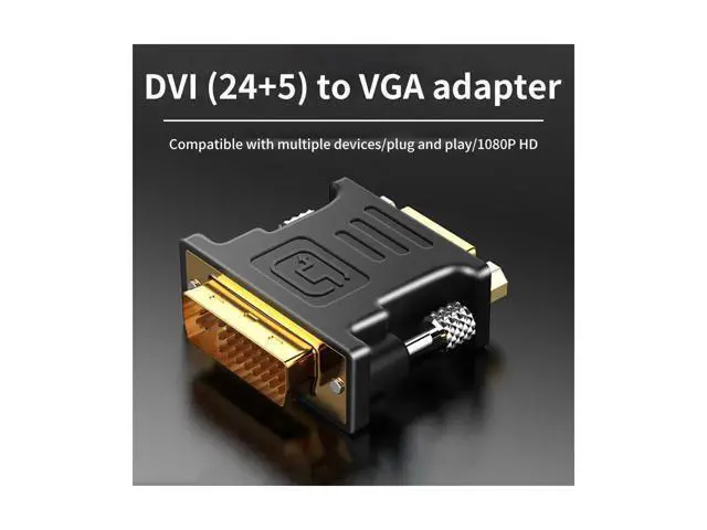 • The DVI to VGA adapter can only convert from DVI to VGA signals. DVI-I 24 + 5 male to VGA female connect your desktop, laptop, graphics card with a VGA equipped HDTV, monitor, projector.