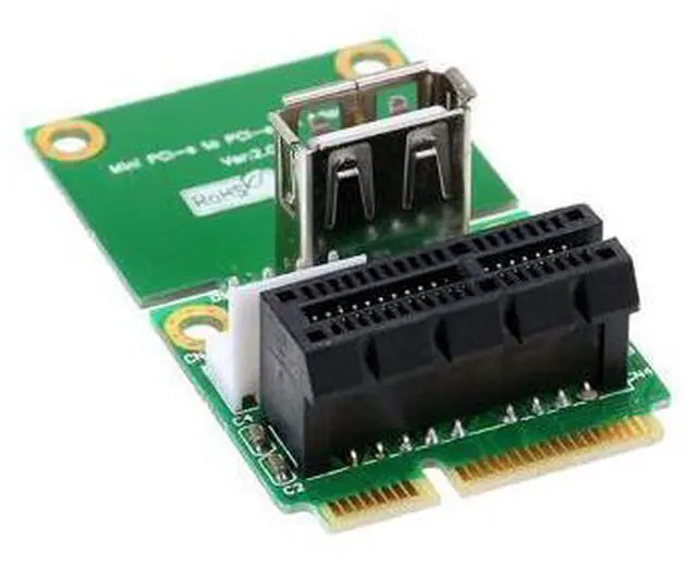 • Specifications: Item Weight: 8g / 0.28oz Package Weight: 24g / 0.85oz Item Size: 5 * 3 * 1.5cm / 1.97 * 1.18 * 0.59in L * W * H Package Size: 13 * 9 * 1.5cm / 5.12 * 3.54 * 0.59in L * W * H) Features: Meet the standard of Mini PCI-e and PCIe V1.1. Support PCIe 1x and USB device. Compatible with multiple OS. Support half or full height Mini PCI-e. Should be connected to 5V/12V power supply to USB and PCIe decive.